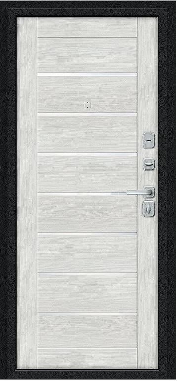Дверь Браво Техно/BChrome Букле черное/Bianco Melinga - недорогая эконом класса по цене 4 283 руб., отлично подходит для временной установки в квартиру под сдачу, строительство, ремонт. Не смотря стоимость, модель хорошего качества.
